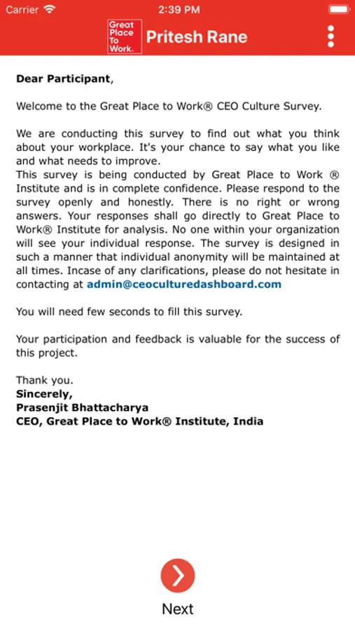 This is official application of Great Place to Work® Institute’s CEO Culture Dashboard.
