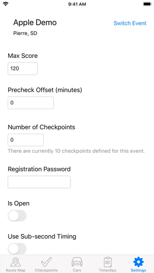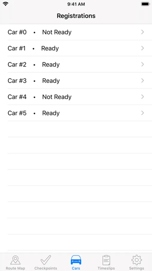 Easily lay out a course using the Richta GPS Checkpoint system. The Rally Master app allows you to add, delete and even drag to reposition checkpoints. After checkpoints have been added to the map, you can quickly adjust any timing related information. The app also allows you to see all teams who have registered and their ready-status.