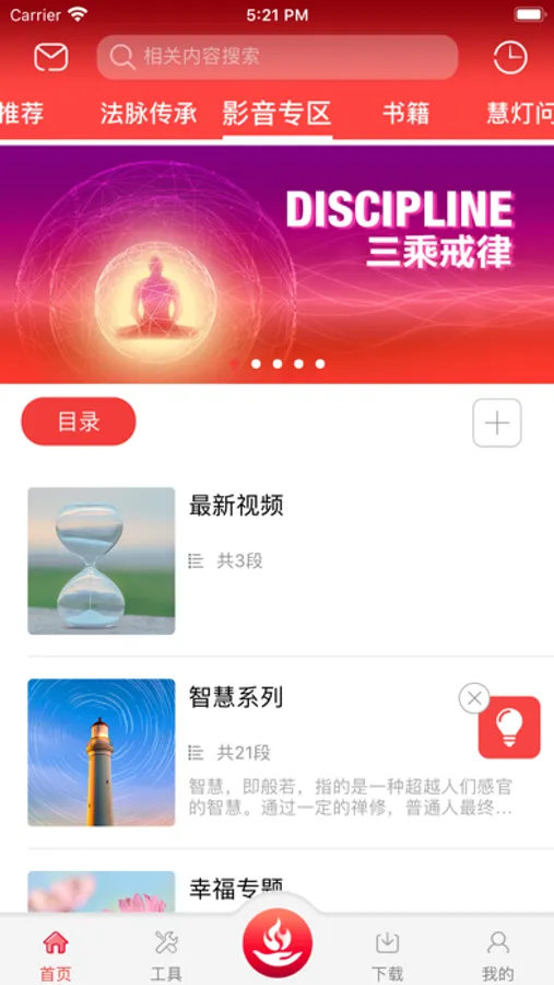 “慧灯之光App”汇集了慈诚罗珠堪布珍贵的佛学教言和已出版的《慧灯之光》系列丛书等相关内容,为用户提供在线阅读、音视频播放下载等功能服务。