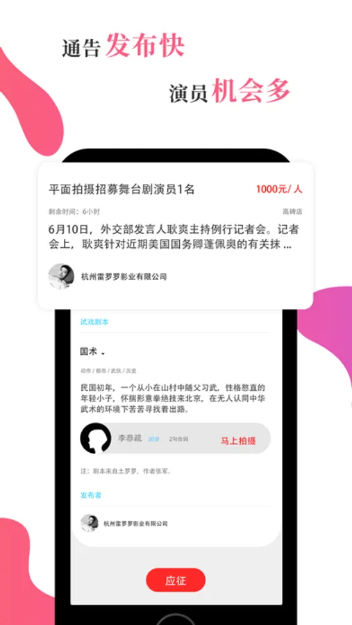 3、演员用户能够拥有在线表演试镜的机会。