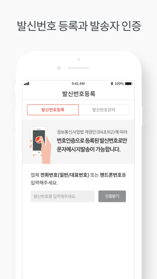 • 발신번호/발송자 : 발신번호를 등록할 수 있으며, 발송자 정보를 앱에서 쉽게 인증할 수 있습니다.