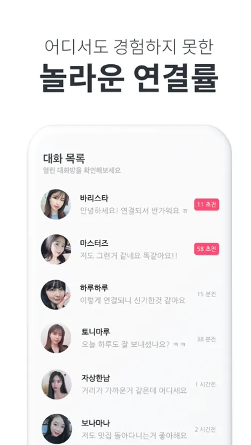 라블에서는 최근에 활동한 이성 친구도 바로 소개해드리고 있어, 놀라운 연결률을 경험해 보실 수 있어요. 게다가 해당 이성 친구들의 매력들도 살펴볼 수 있어 다양한 만남을 가져볼 수 있어요.