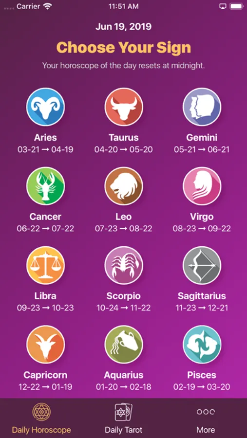Daily Horoscope is a free Horoscope app updated daily for 12 zodiac signs.
