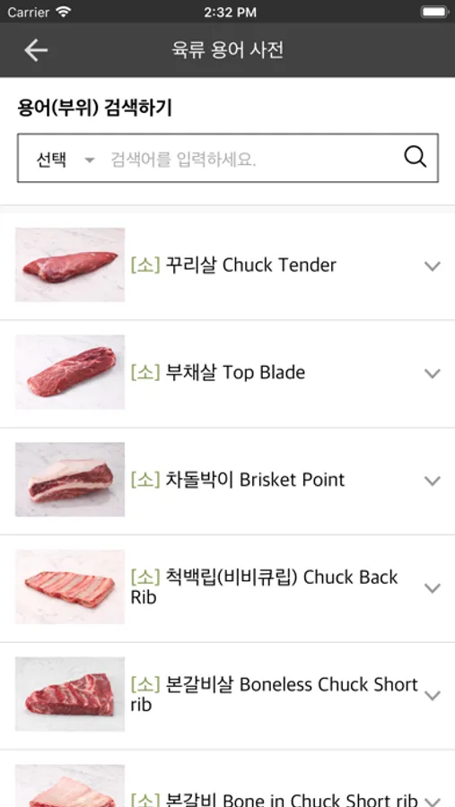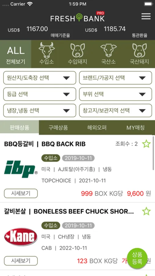 -국내에 유통되는 원료의 상품의 규격, 등급, 유통기한, 상품사진을 필터링을 거쳐 원하는 상품을 찾아 선택 볼 수 있음