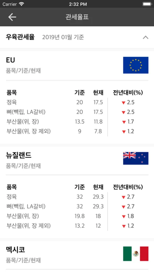 국내에 유통되는 (국내산, 수입산) (소고기, 돼지고기) 원료육 시장의 상품정보,