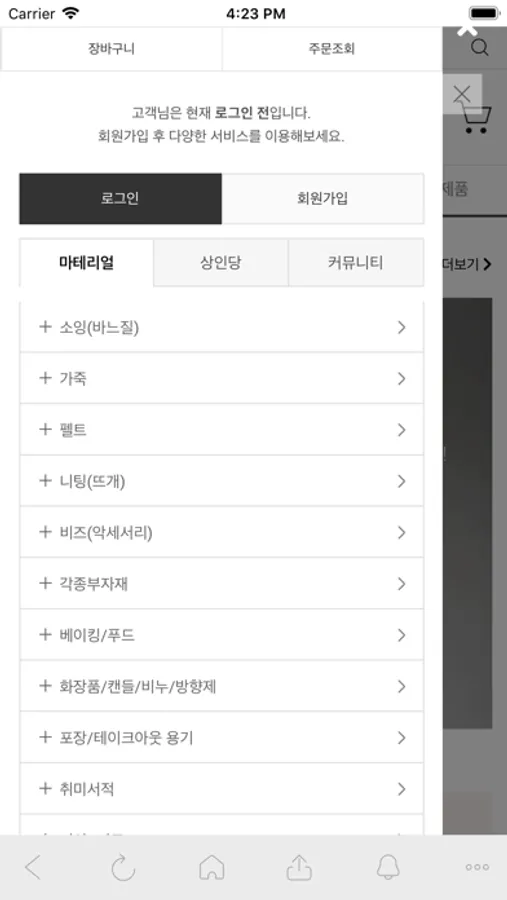 - 원자재 판매 원단, 부자재, 쿠킹 재료, 각종 도구, 가죽, 가죽 도구 등