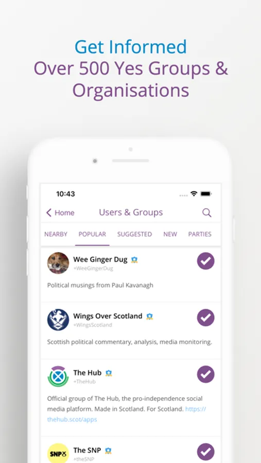 The Hub will instantly notify you when sites such as Wings Over Scotland, Bella Caledonia, Newsnet.scot, Independence Live, Scot Goes Pop & Wee Ginger Dug post articles, videos & podcasts. Once you register, simply join any groups that interest you and your timeline will begin to fill up with their content.