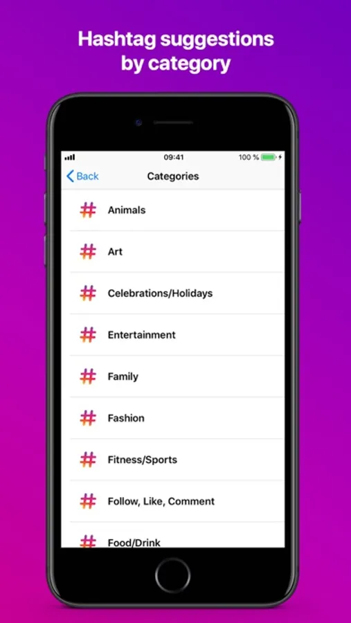 - Hashtag suggestion list with over 2,000 hashtags.