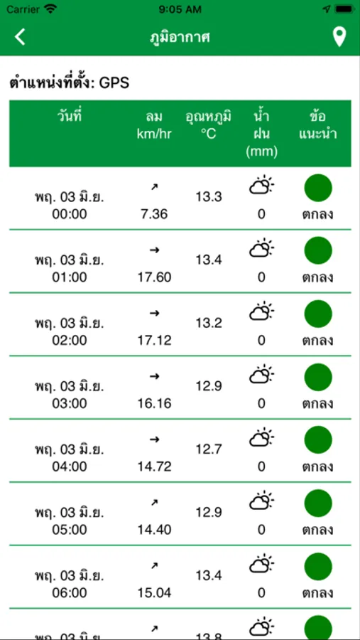 พยาการณ์อากาศนี้ ช่วยแนะนำช่วงเวลาการพ่นที่เหมาะสมของแต่ละแปลง