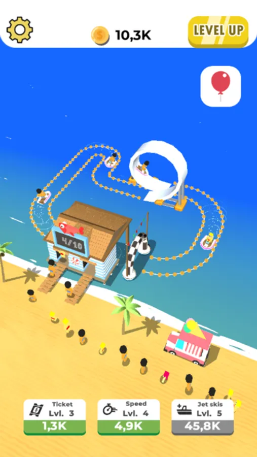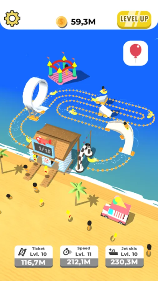 Get unbelievable jet skis and race circuit and upgrade your park to be the biggest one !
