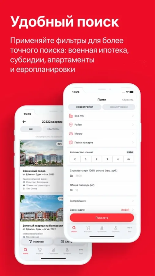 • Фильтры удобного поиска – подбор по заданным параметрам