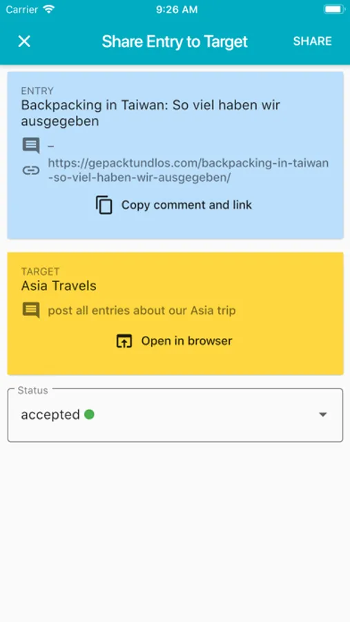 Keep track to which targets you have already shared your blog post. Discover unserved targets.