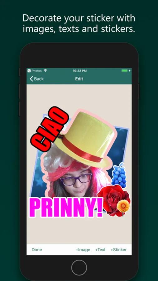 You can make your stickers by freely composing one or more images, texts or stickers.