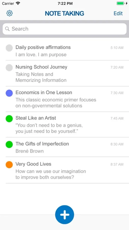 Great for those quick notes! Just tap the + button and start typing!