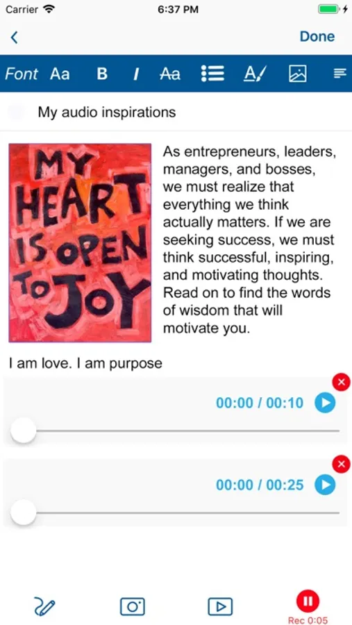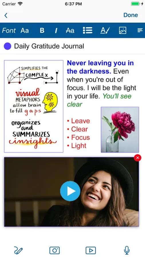 ● Record ideas, meetings, and lectures with the audio note.