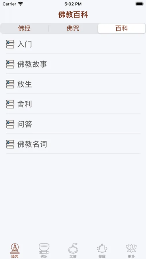 3、 佛教百科 - 包含:1.入门 2.佛教故事 3.放生 4.舍利 5.问答 6.佛教名词。
