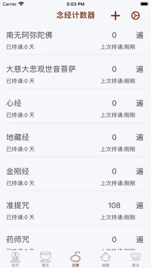 帮助师兄们统计所持经咒的次数,功能丰富,可以满足师兄们日常念佛计数的需求。