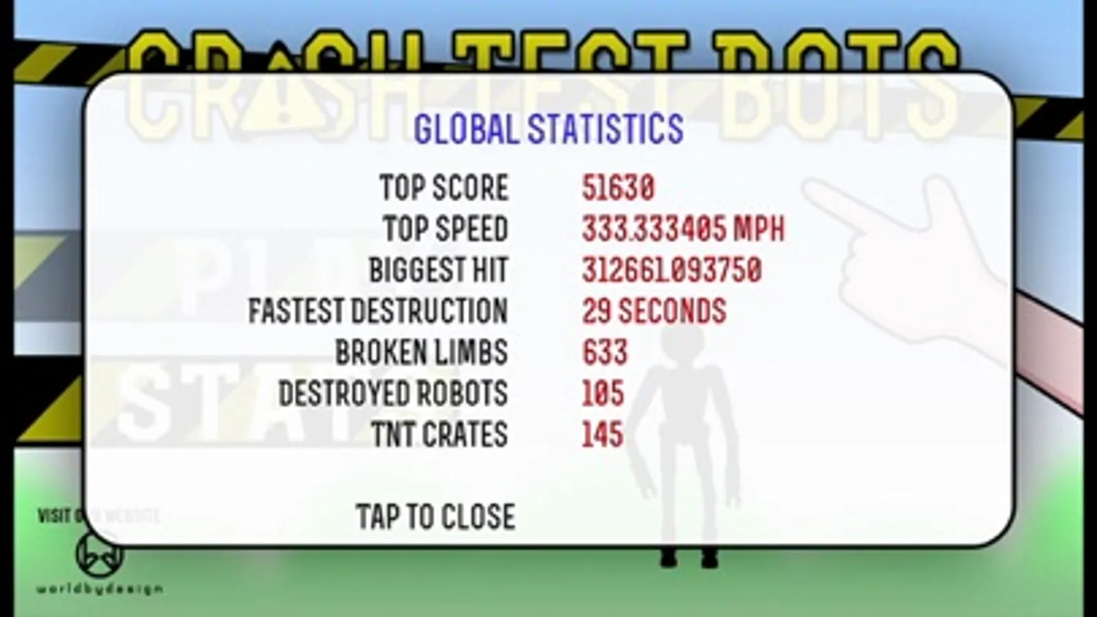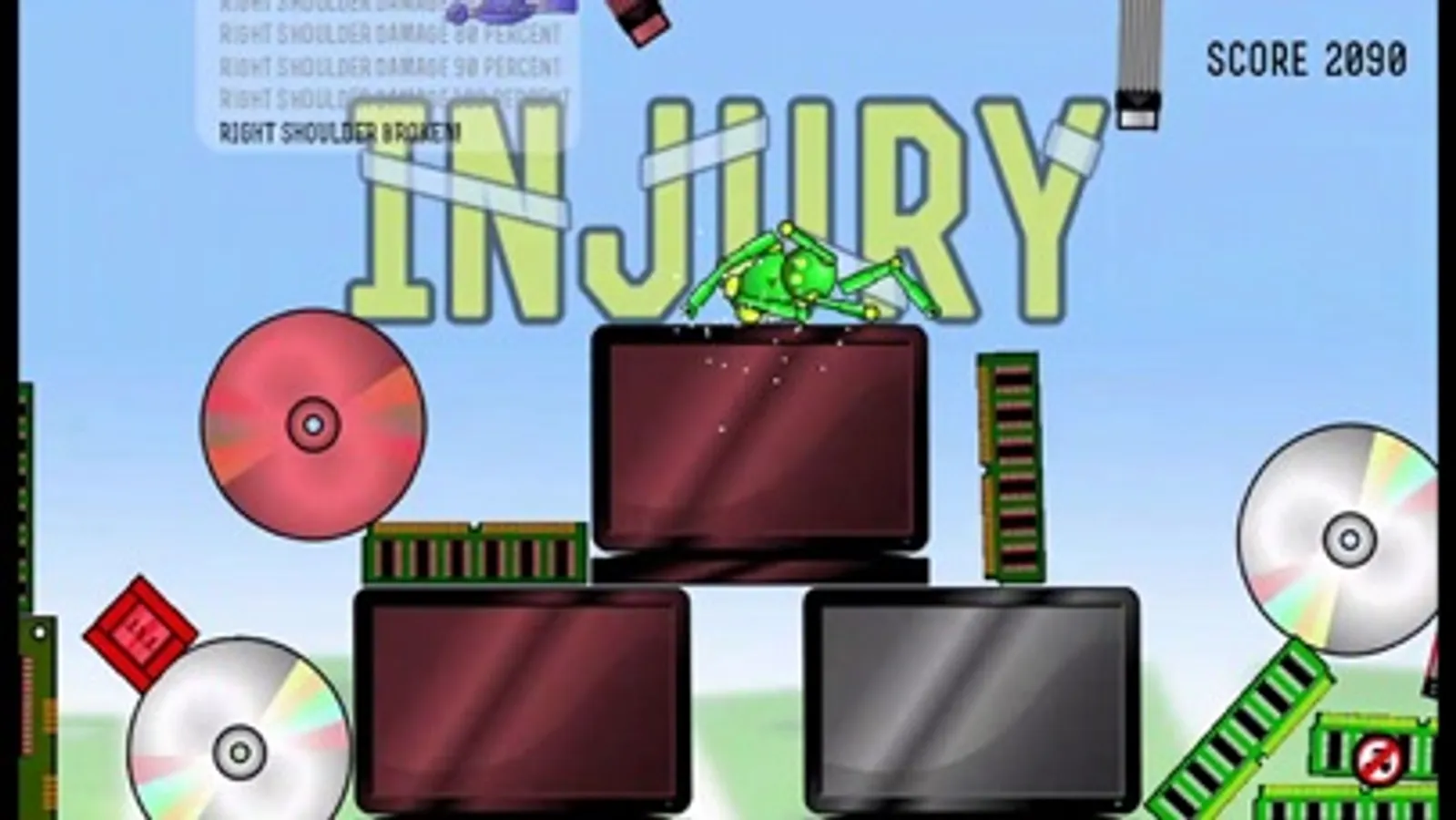 Shoot your robot around the scene, hitting as many objects as possible, causing as much damage to your "bot" until they are totally destroyed.