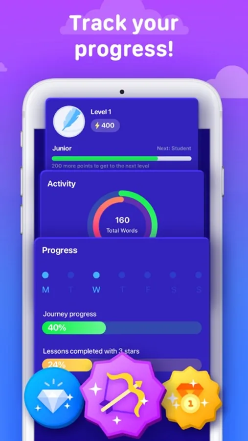 Explore journey mode with 30+ available topics, practice with 5000+ words and expressions.