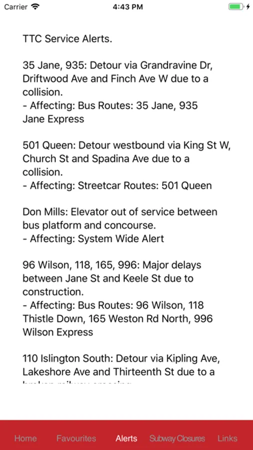 Simple and efficient interface helps you quickly access predictions of TTC bus arrival time or departure time. Also, you can get TTC service alerts, subway closures information.