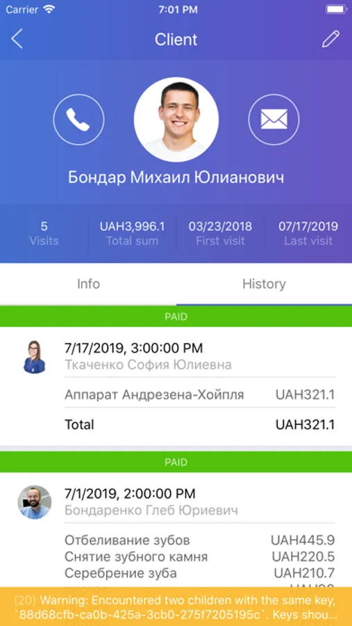The Denta Pro mobile app will help administrators and doctors keep up to date with the records in their schedule, manage them, add new customers and book time for their visits, as well as view the history of customer visits. In this case, all changes made in the mobile application will be automatically displayed in the main program installed on the PC.