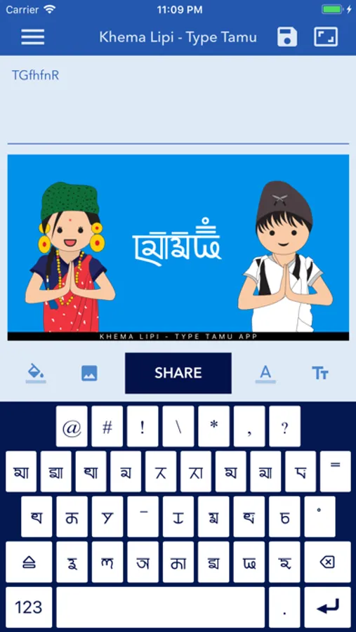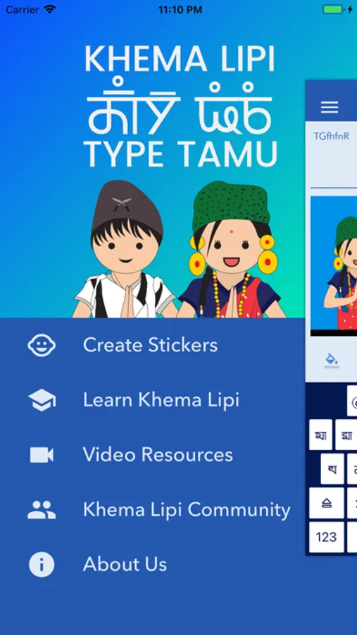 This is Khema Lipi - Type Tamu app that allows you to type in Khema Lipi. You can create beautiful E-cards or greeting cards with the in-app stickers and share them to the social media, friends and even save on your device.