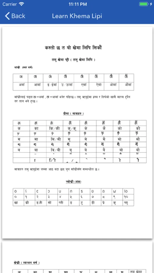 Read about how to read and write Khema Lipi, based on the instructions provided in the in-app booklet.