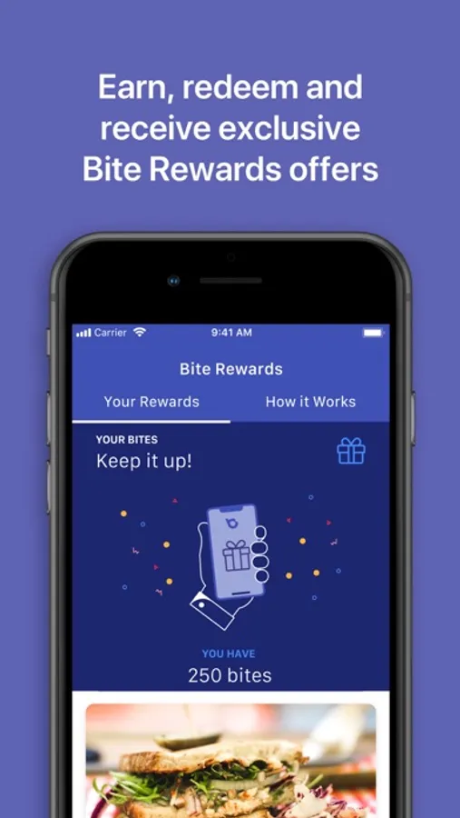 -Earn Bite Rewards progress with each purchase you make and redeem available rewards easily from the App