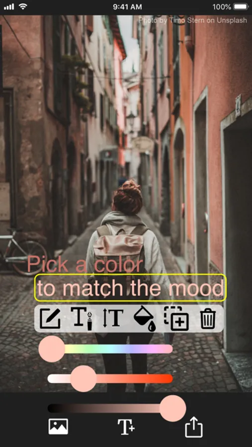 • Color your text with millions of colors using hue, saturation, and brightness sliders