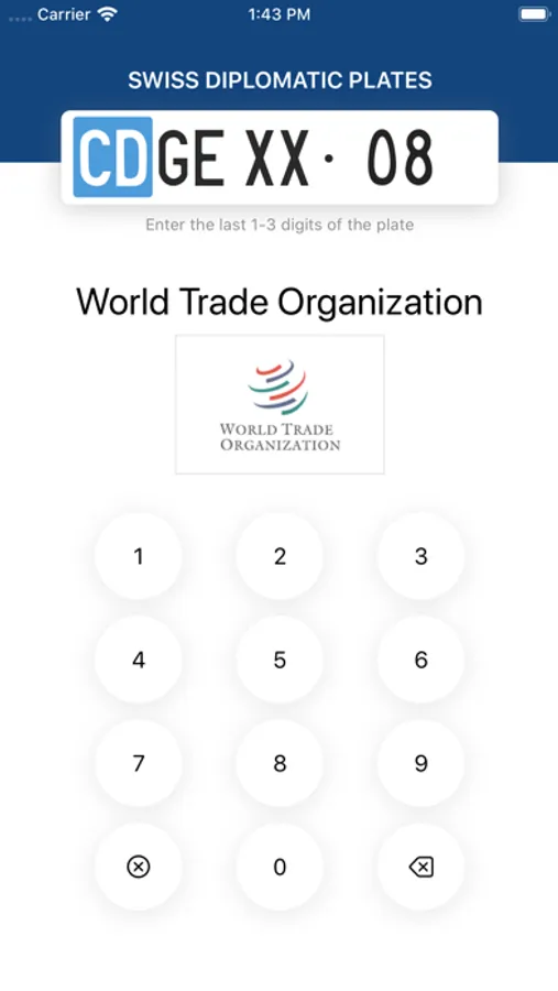 Diploplates allows a quick country lookup for diplomatic car plates in Geneva, Switzerland. Just enter the last 1 - 3 digits of car plate. It also identifies car plates for international organizations in Geneva, such as UN, WHO, WTO, etc.