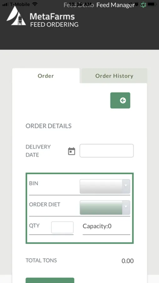 • Place feed orders on-site and on-demand at the site level using your current diets and phases