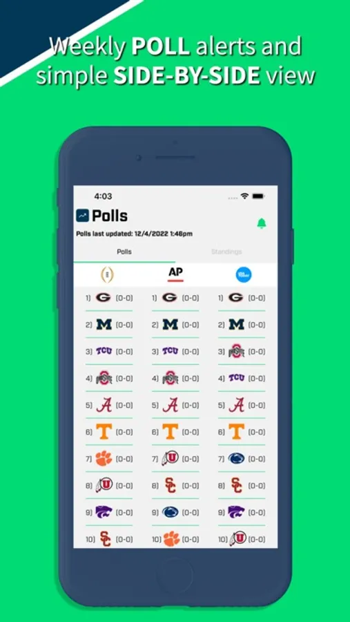 Ranked: College Sports is not affiliated with or endorsed by the NCAA, any university, or any other sports league, nor is it a gambling app, and does not accept or place wagers of any kind.