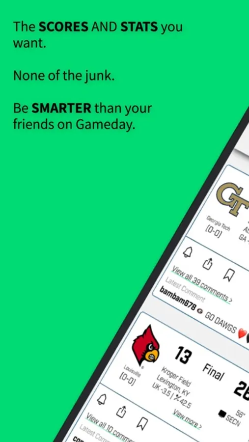 “This app is awesome for a casual CFB fan all the way to a total CFB degenerate, like me. The layout is user friendly and super easy to navigate. 100% recommend!”