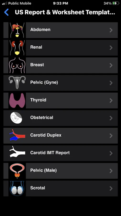 3. Standard templates for ultrasound exams (abdomen, obstetrical, renal, gyne, male pelvis, thyroid, breast, carotid, CIMT and scrotum)