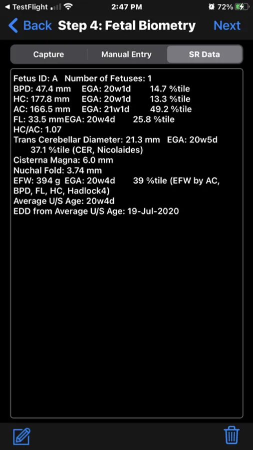 5. Automated import of ultrasound measurements from PACS directly to your worksheet or report with a single tap.