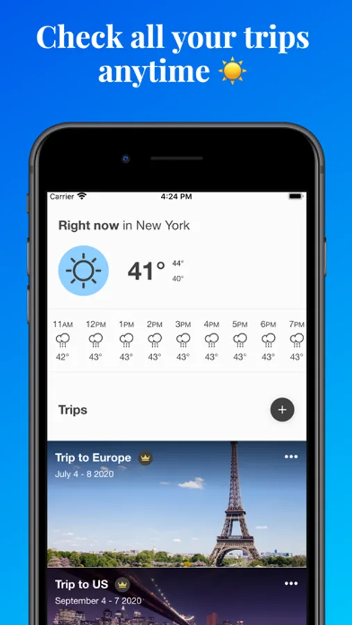 On this weather live app, you can create your trip by setting your destinations. You enter your dates and get a day to day weather of your trip.