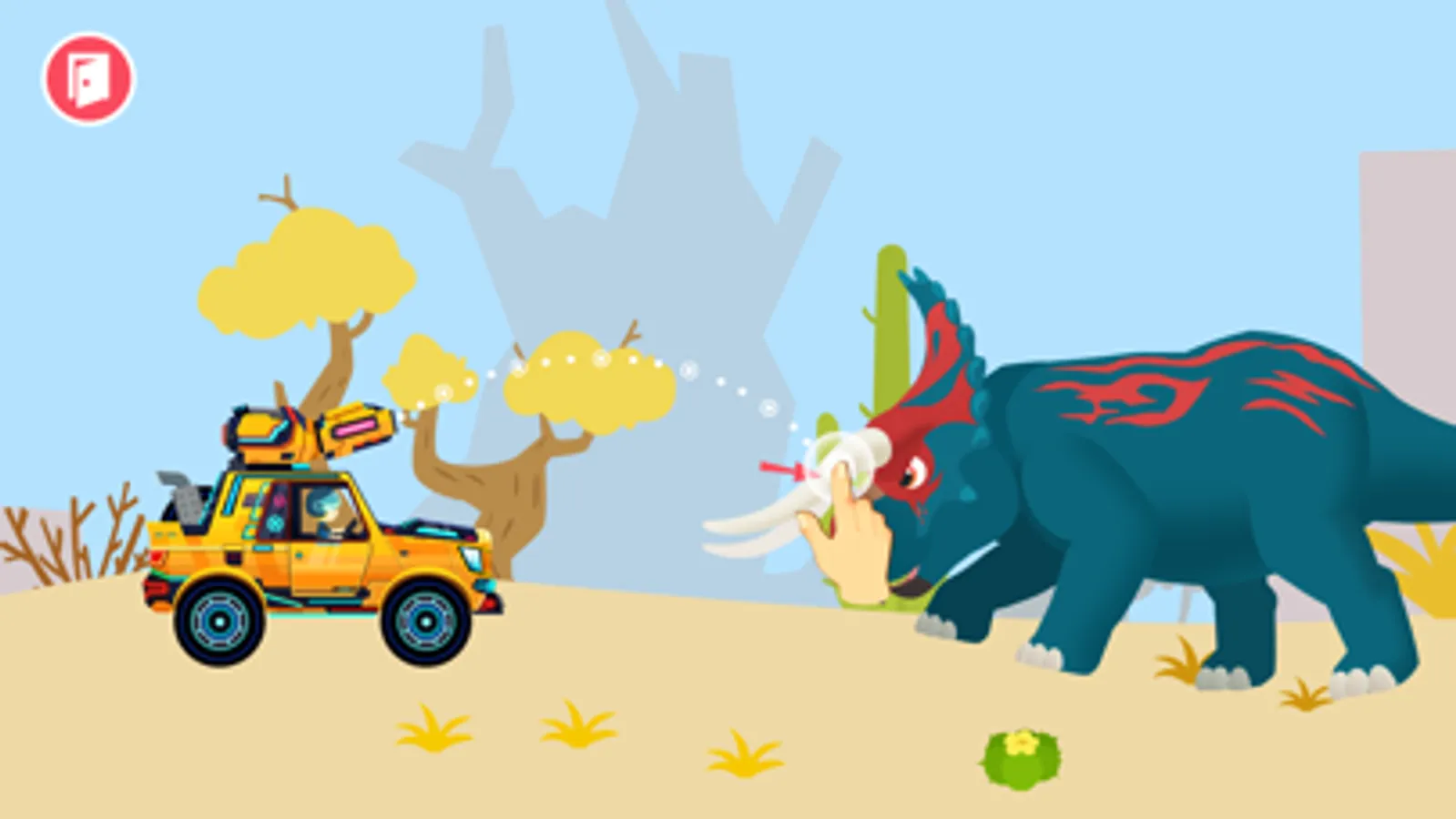 Just when you think you've got the dinosaur cornered, watch out! These ancient predators are crafty and may turn your car upside down. It's time to take aim! Shoot slime, stun them with smoke bombs, or use other captivating tools at your disposal. Choose your favorite car, be it the fist car, slime car, tranquilliser car, smoke bomb car or the drumstick car. Your mission: capture the dinosaur!