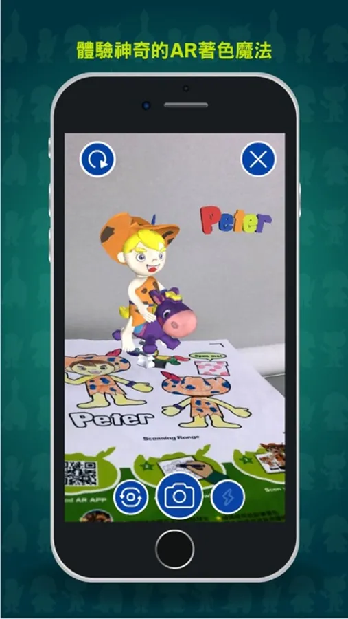 AMC空中美語第一本結合AR擴增實境技術的遊戲字彙書,跟著Peter與恐龍們一起去恐龍世界大冒險吧!