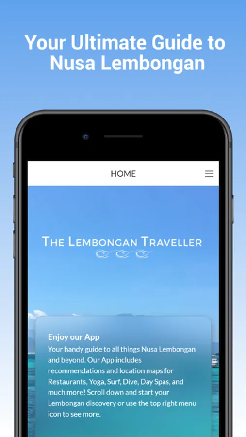The Lembongan Traveller App is dedicated to providing information to people travelling to the island of Nusa Lembongan. Nusa Lembongan is an island 30 minutes from Bali in Indonesia. This travel app will provide useful travel information, locations of businesses on the island as well as weather information.