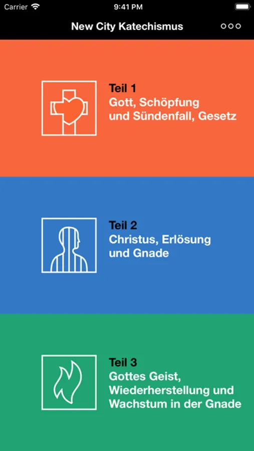 Die deutsche mobile App des New City Katechismus macht es einfach, alle 52 Fragen und Antworten überall hin mitzunehmen. Die App enthält auch vorgeschlagene Bibellektüren, kurze Gebete und devotionale Kommentare.