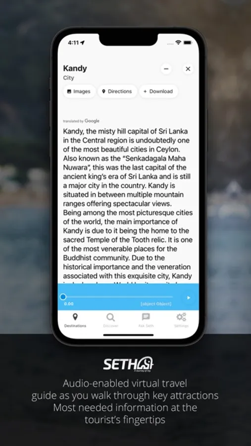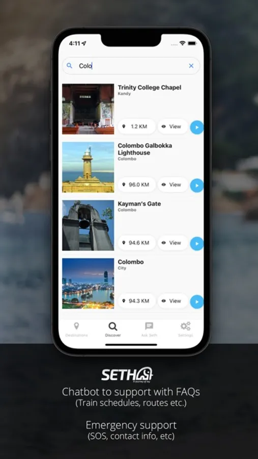 So you might have figured this out by now...Seth is an app that offers you a new and interesting way of travel. It is a virtual travel guide that'll help you traverse the country by yourself or even with company. The app will assist you with audio-guided tours to places in your vicinity by location. And it doesn't stop at that - the app also offers a friendly chat service where you can chat to Seth for any quick assistance - he will provide you with useful information on demand, ranging from train, bus schedules to best times for visiting some key tourist attractions in the country, and a lot more information from useful telephone numbers to anything else that you as a tourist may need. So you know, its not just new and interesting, but definitely the safest, reliable and most efficient way to tour Sri Lanka.