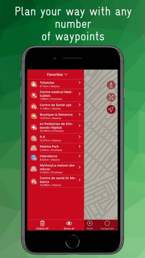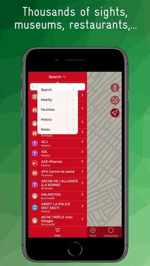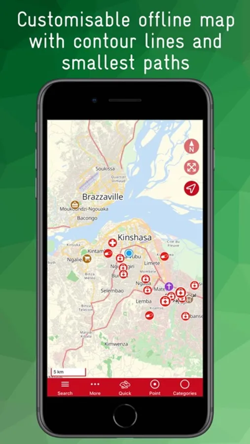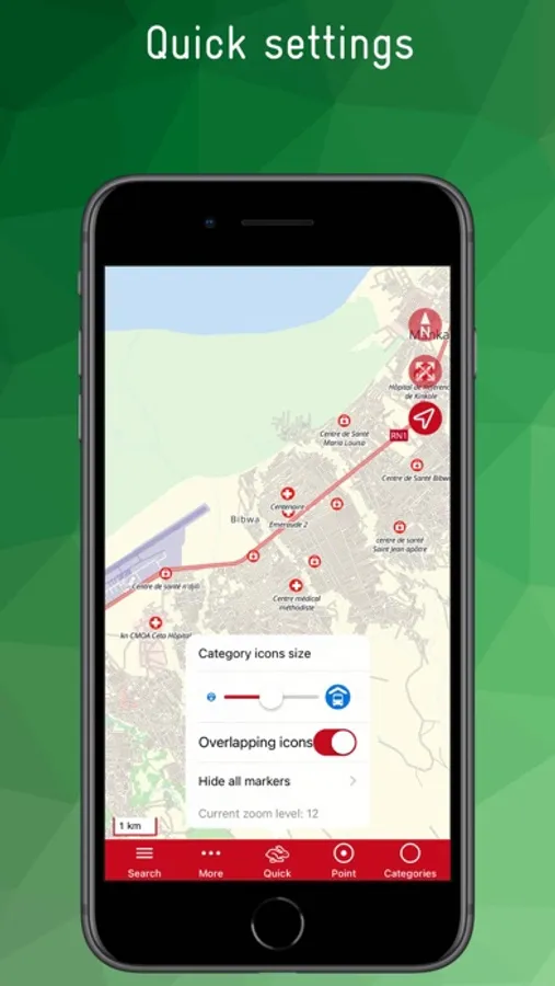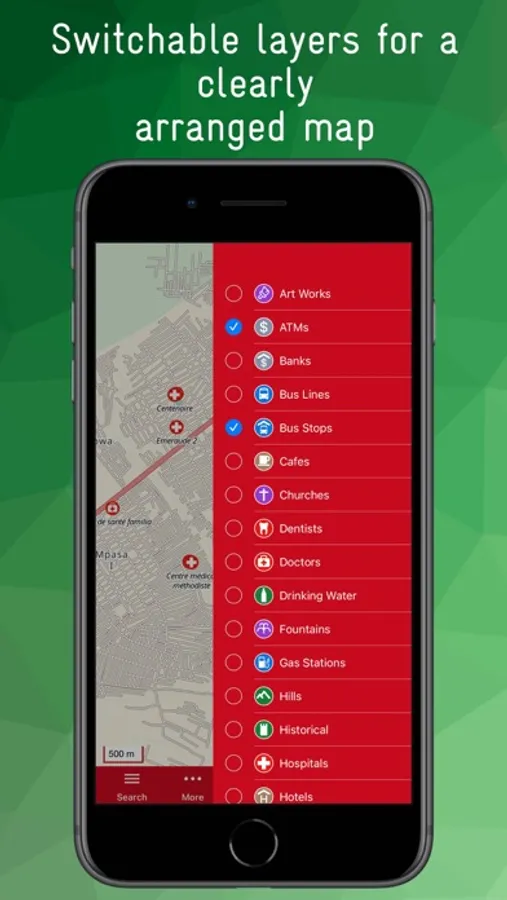 POIs are grouped into categories and can be displayed as layers. For example, you can display all restaurants, public transport lines, banks, hiking trails, charging stations and doctors on the map. The size and overlap of the icons can be adjusted to improve clarity.