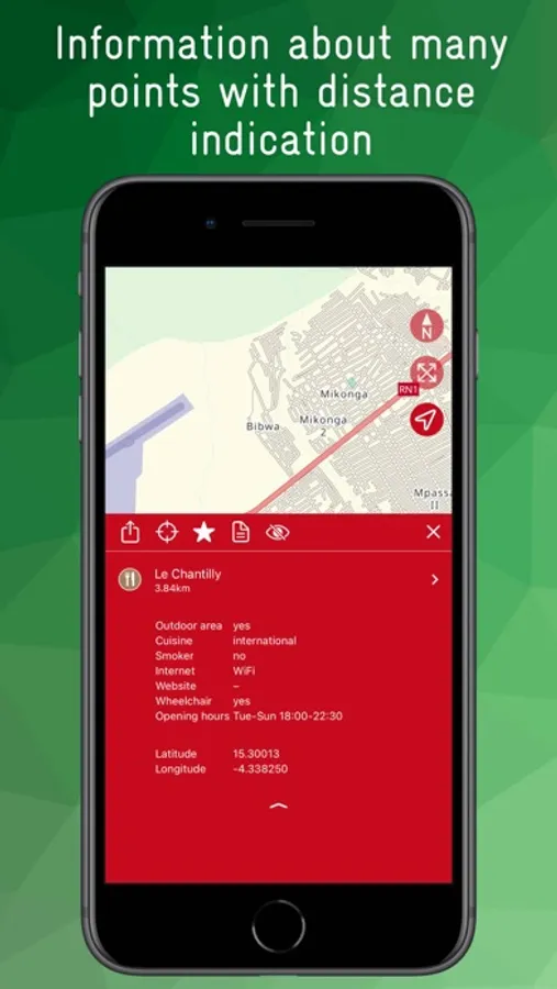 For many POIs there is further information such as opening hours, address, disabled access, ... Notes or favourites can be created for each POI, a history list shows the most recently used POIs, content can be shared.