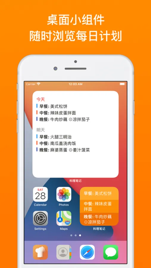 - Intuitive schedule planning page, plan three meals a day like ordering food.