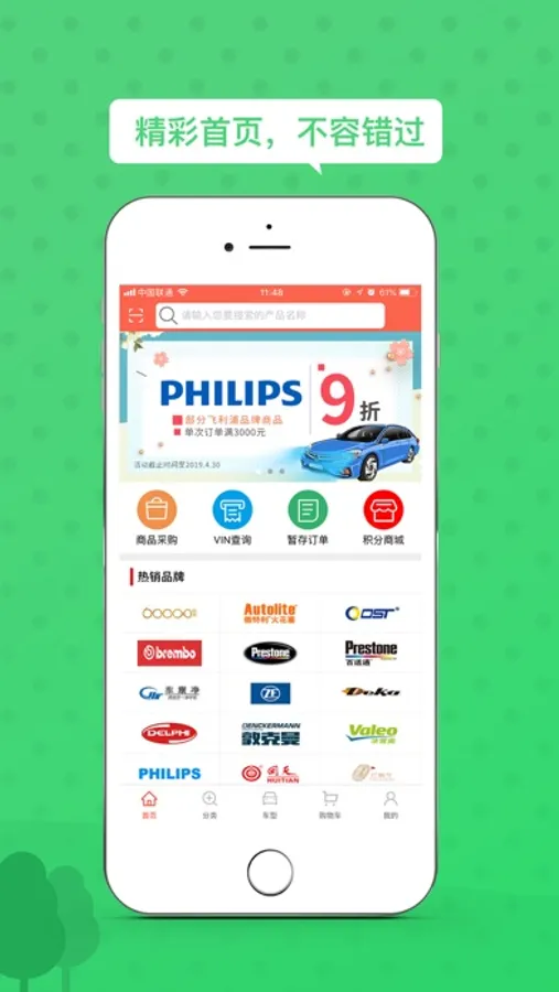 可以VIN码查询一键适配,任意关键词搜索,查找商品方便快捷,订单提交,积分商城,PC 端支持订单的导入导出,同时支持公对公线上支付,APP支持微信支付宝支付!