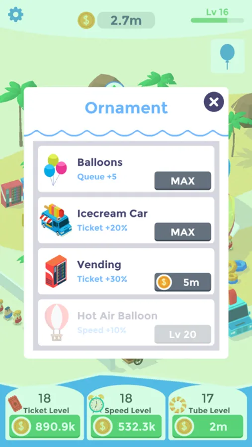 Let's cool off by managing your own water park. In Idle Aqua Park you will enjoy :