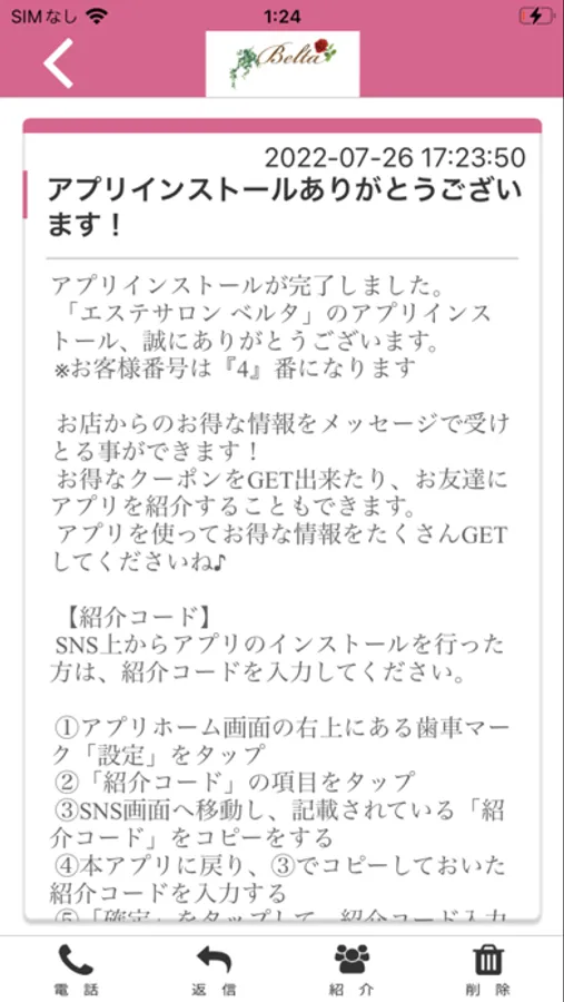 ベルタのアプリをSNSを通じてお友達に紹介する事ができます。