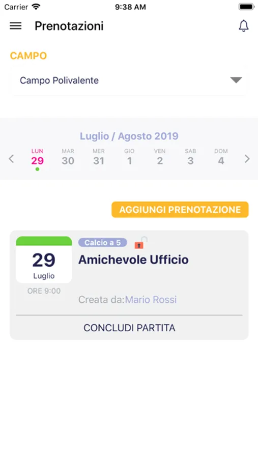 Semplice e funzionale, permette all'utente di visualizzare i tuoi campi sulla mappa e prenotarli con un click, vedendo in tempo reale la disponibilità gli orari e tutte le info relative.