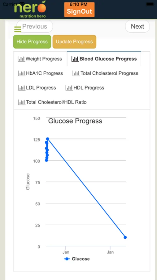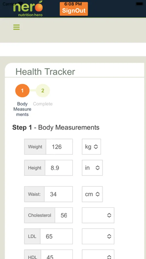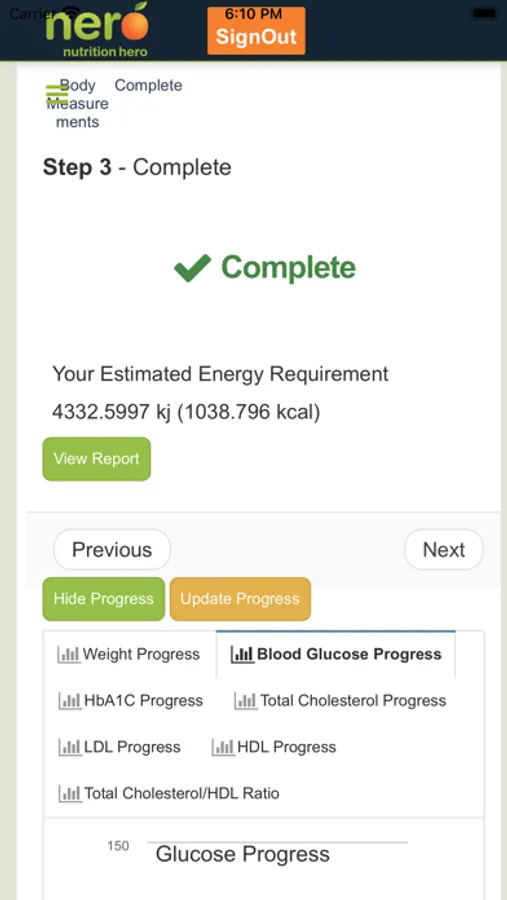 Using the NERO app, you can monitor your health progress depending on your individual health goals, such as weight, blood glucose or cholesterol levels or gut tolerance changes.