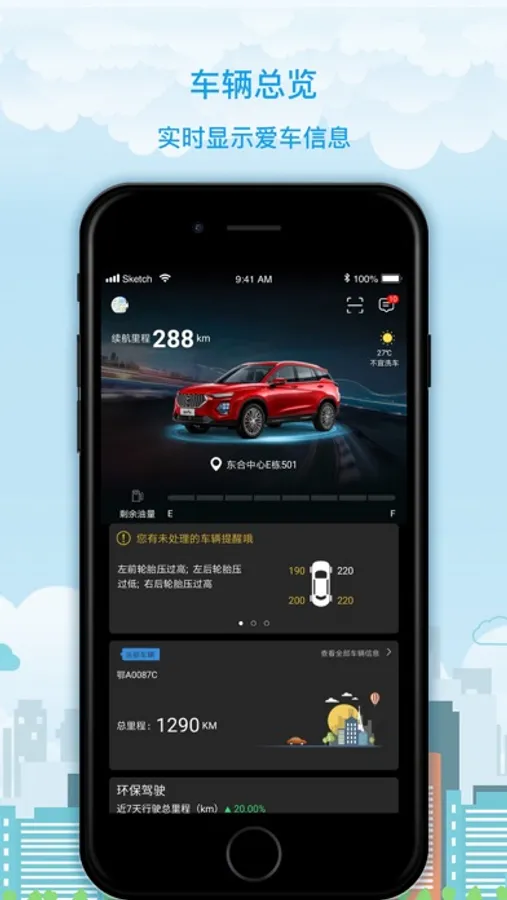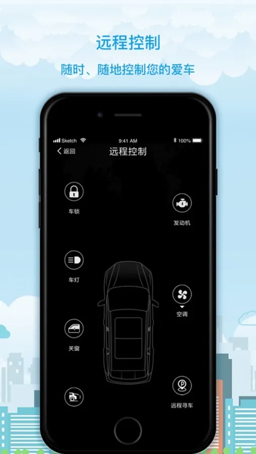 -远程控制:可随时启动、停止、锁止车辆,开启空调及远程寻车等。